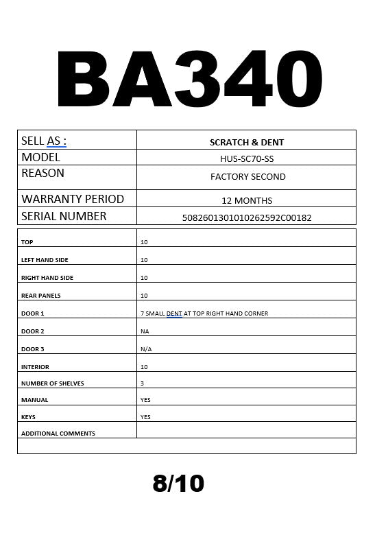 | Product Snapshot | SCRATCH & DENT This unit was damaged at the factory and sent to us as a second. Unit however is BRAND NEW and in otherwise perfect working order. Tropical rated glass door bar fridge, right hinged, made especially for outdoor tropical alfresco areas in Australia. Triple glazed stainless door with bar handle and lock, LOW E glass, LED strip lighting and interior fan fro even air temperature distribution. We designed shelving structure to allow 4 x height of cans, can fit 85 x 375ml inside. Perfect for that little outdoor barby area or that shed environment for a few spare cool ones in times of need. |