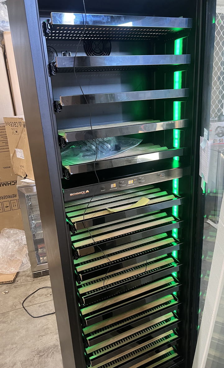 Scratch and Dent Upright Super Slim Depth Quiet Running Glass Front 2 Zone Wine Fridge With 5 x LED Colour Options - Model SD-A627-SK168D In Stock Pre Order Out of Stock